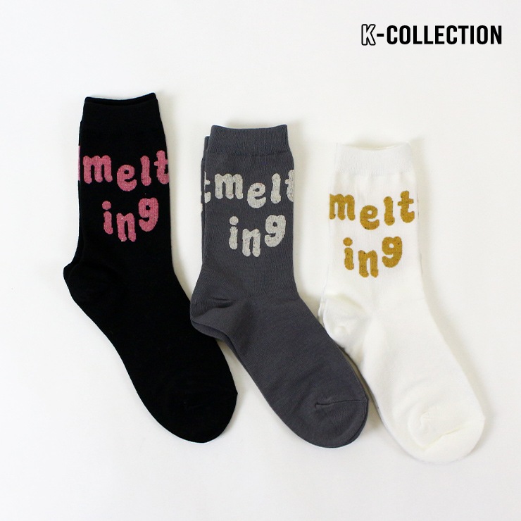 K-collection ケイコレクション ソックス 靴下 ロゴ 韓国 K-POP ブラック ホワイト グレー エクササイズ フィットネス ジム スポーツ ダンス ヨガ ウェア (ME006)